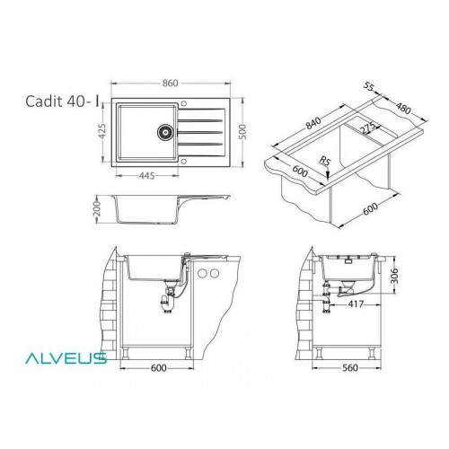 ALVEUS GRANITAL CADIT 40 CARBON - G91 860 X 500 черный
