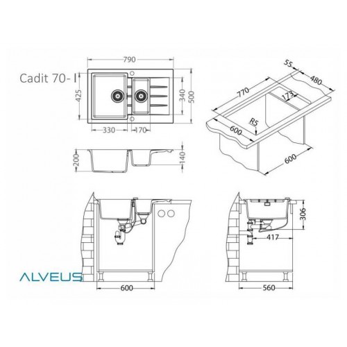 ALVEUS GRANITAL CADIT 70 CARBON - G91 790 X 500 черный