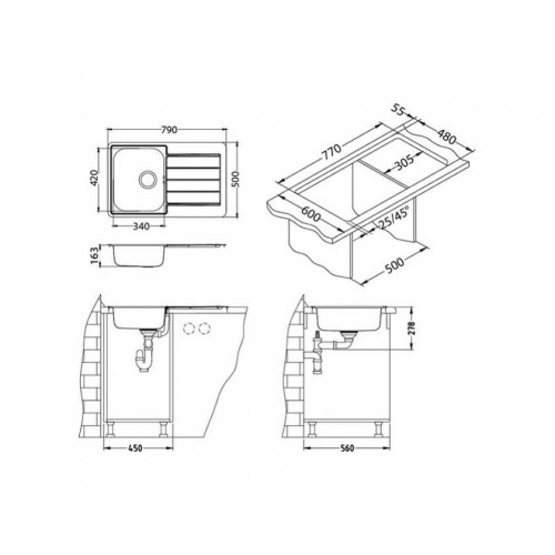 ALVEUS LINE 80 NAT-90 790X500 1X нерж.сталь мойка