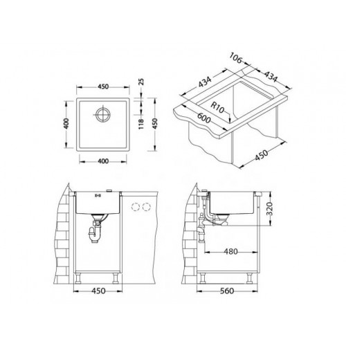 Типы установки: Полностью врезные мойки (F) / Плоскостно-врезные мойки (S) / Чаши для монтажа под столешницу (U)