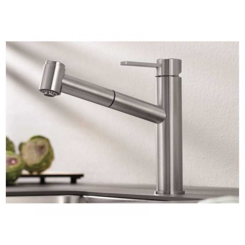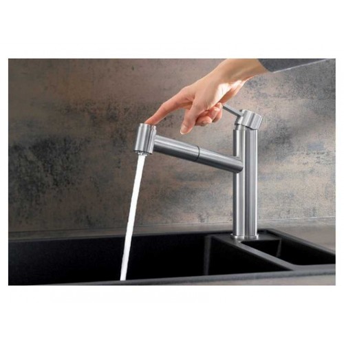 Однорычажный смеситель Blanco Ambis-S отличается не только эффектным дизайном, но и расширенными функциональными возможностями. Модель из нержавеющей стали с матовой отделкой поверхности способна изменять характер подачи воды одним нажатием на кнопку.