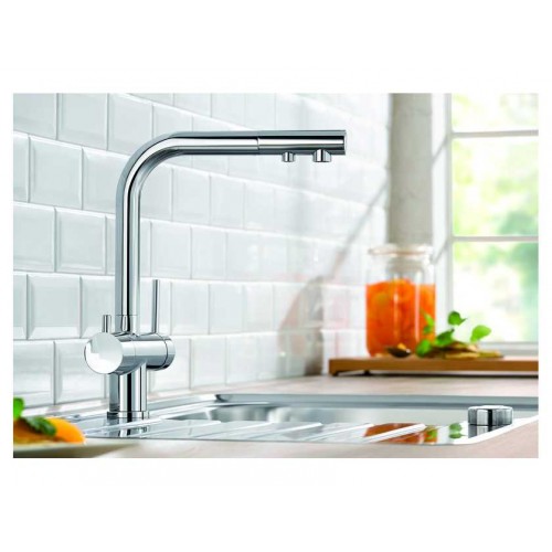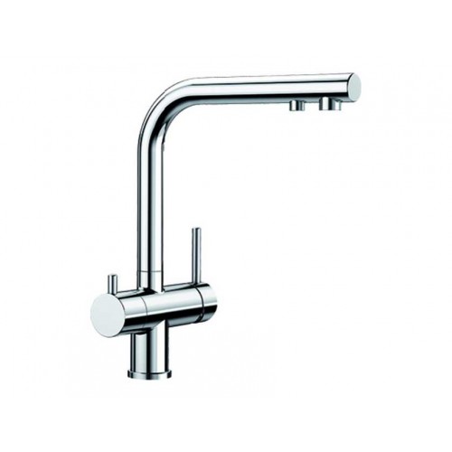 Смеситель Blanco Fontas объединяет сразу две функции - питьевая и обычная вода из одного смесителя. Высокий излив обладает двойной функциональностью, питьевая вода не смешивается с обычной и подается из отдельного отверстия. Смесителем удобно пользоваться , так как он имеет два отдельных рычага управления для водопроводной и фильтрованной воды соответственно. Излив смесителя вращается на 360 градусов, что позволяет направить поток воды в наиболее удобное место.