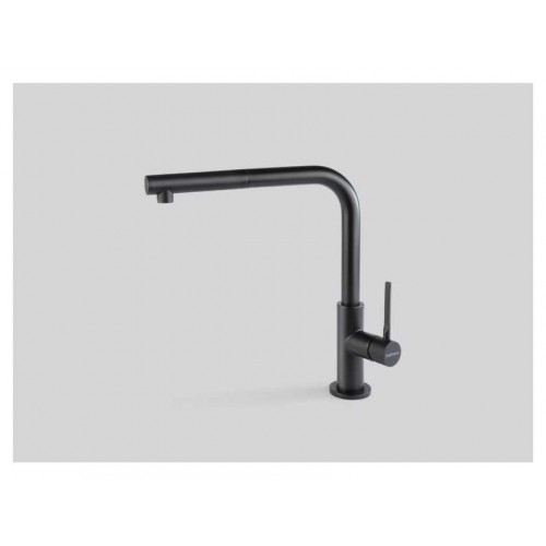Однорычажный смеситель для мойки с прямоугольным поворотным изливом и выдвжным душем.