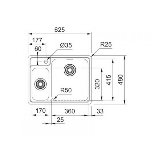 Размер мойки 625 x 480 mm