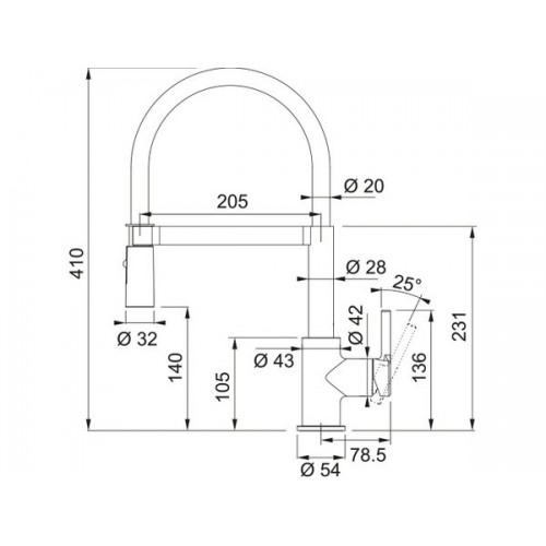● Длина излива: 205 мм