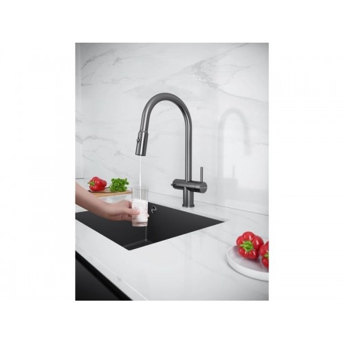 Смеситель KÜCHENSTERN BRUNN-FS объединяет сразу две функции - питьевая и обычная вода из одного смесителя. Смесителем удобно пользоваться , так как он имеет два отдельных рычага управления для водопроводной и фильтрованной воды, а также переключается на режим "Душ".