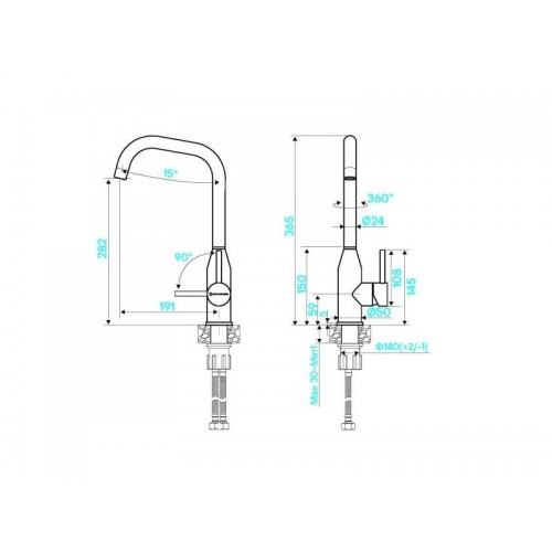 Высота излива: 282 мм