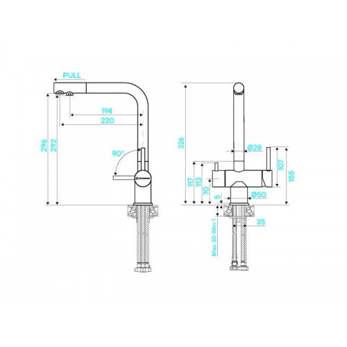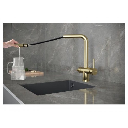Смеситель KÜCHENSTERN FOKUS-FS объединяет сразу две функции - питьевая и обычная вода из одного смесителя. Смесителем удобно пользоваться , так как он имеет два отдельных рычага управления для водопроводной и фильтрованной воды.