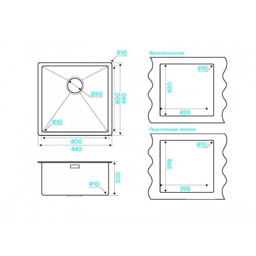 | Тип монтажа | монтаж сверху или под столешницу |