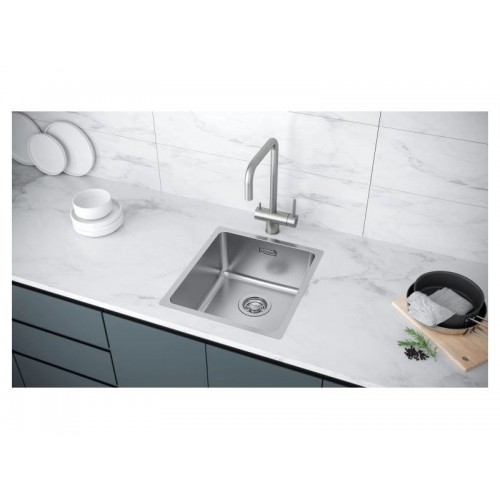 Мойка изготовлена из нержавеющей стали, обладающей высокой коррозийной стойкостью, большим запасом механической прочности, а также устойчивостью к воздействию кислот и других химически активных соединений.