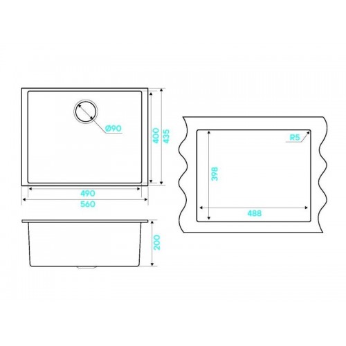 Размер мойки - 560х435х200мм