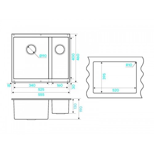 Размер мойки - 555х460 мм