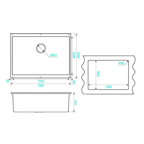 Размер мойки - 730х460х190мм