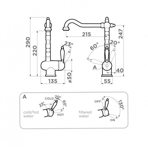 Новая удобная технология системы ручки 2 в 1 Multi позволяет переключить с водопроводной на фильтрованную воду в одно касание.