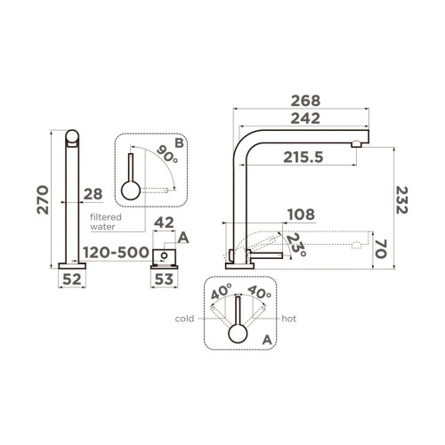 Новая удобная технология системы ручки 2 в 1 Multi позволяет переключить с водопроводной на фильтрованную воду в одно касание.