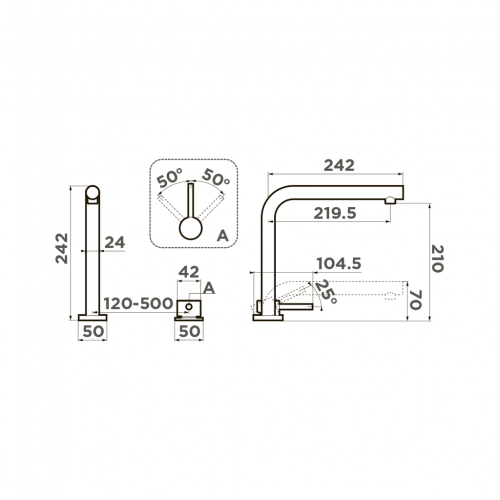 Смеситель-трансформер Nara встраивается в мойку или столешницу, освобождая пространство перед окном.