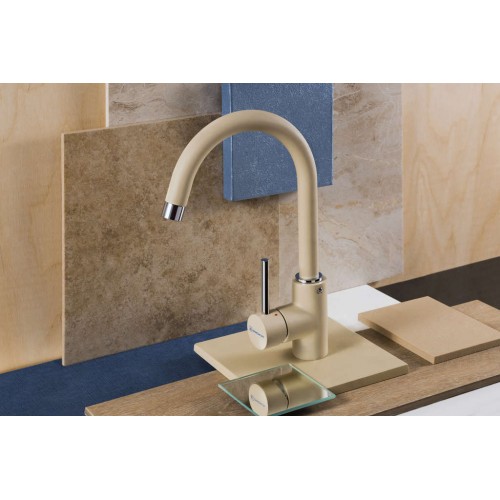 Практичный однорычажный смеситель выполнен в современном стиле и снабжен высоким поворотным изливом. Практичный модельный ряд «Comfort».