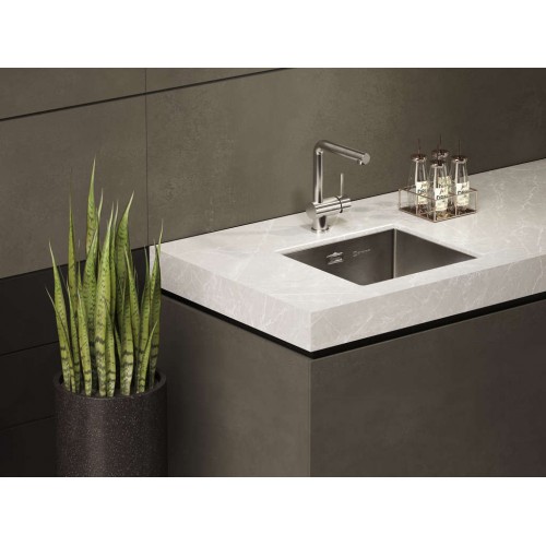 Практичный однорычажный смеситель выполнен в современном стиле и снабжен высоким поворотным изливом.