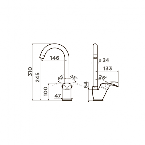 Смеситель выполнен в современном стиле и снабжен высоким поворотным изливом.Практичный модельный ряд «Comfort».