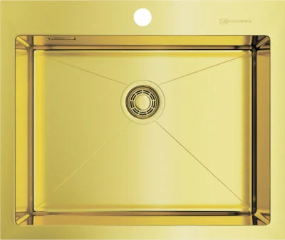 Кухонная мойка Omoikiri Akisame 4973082 изготовлена методом сварки из нержавеющей стали толщиной 1.2 мм с PVD покрытием в цвете светлого золота. Размер чаши 540x400 мм, установка возможна в базу от 60 см. Монтажные размеры 57.4x49.4 см, диаметр слива 9 см. В комплекте сифон, донный клапан, слив, перелив, крепления и декоративный корзинчатый элемент. Вес мойки составляет 7.7 кг. Имеется одно готовое отверстие под смеситель. Подходит для бытового использования.