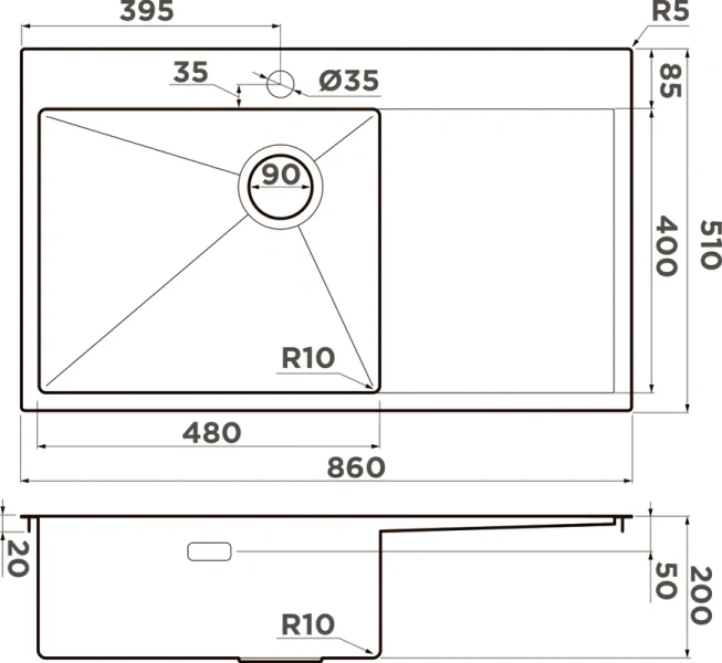 Мойка для кухни Omoikiri Akisame 86-IN-R 86 см правая нержавеющая сталь 4997042