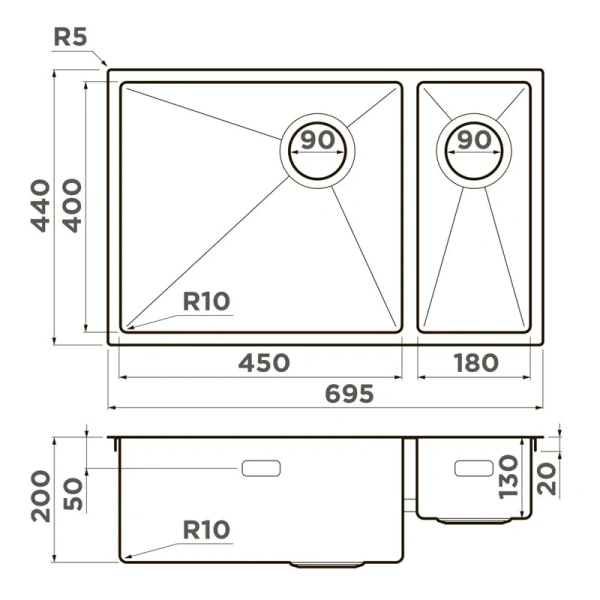 Мойка для кухни Omoikiri Taki 69-2-U/IF-IN 499 69 см нержавеющая сталь