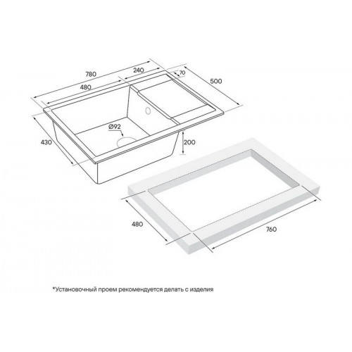 Paulmark FLUGEN антрацит 780х500 мм гранит