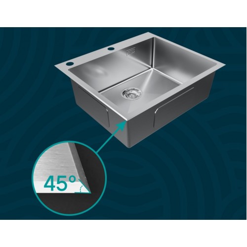 Бортики мойки KRONER-EDGE имеют оригинальную форму боковой грани со скосом 45, что дает повышенную эстетику и легкость в уходе. Изготовлена из нержавеющей стали, обладающей высокой коррозионной стойкостью, большим запасом механической прочности, а также устойчивостью к воздействию кислот и других химически активных соединений.