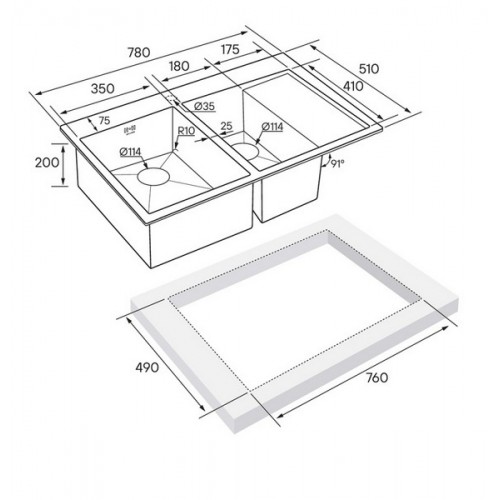 Размер 2 чаши- 180х410х200мм