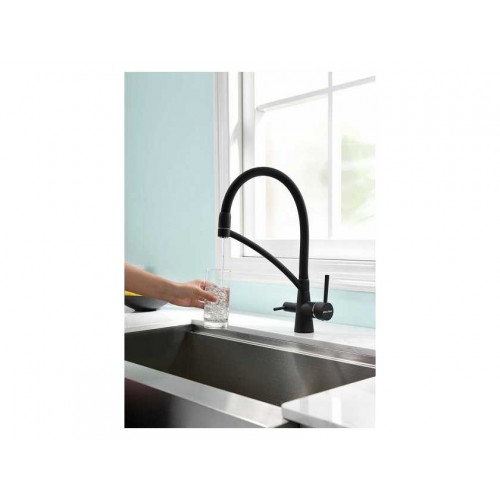 Материал корпуса - латунь высокого качества. Многослойное, стойкое к истиранию покрытие. Долговечный керамический картридж диаметром 35 мм. Эластичный излив. Съемный пластиковый аэратор, который обеспечивает мягкую струю, ровный и экономичный поток воды. Простой монтаж, стандартное подключение.