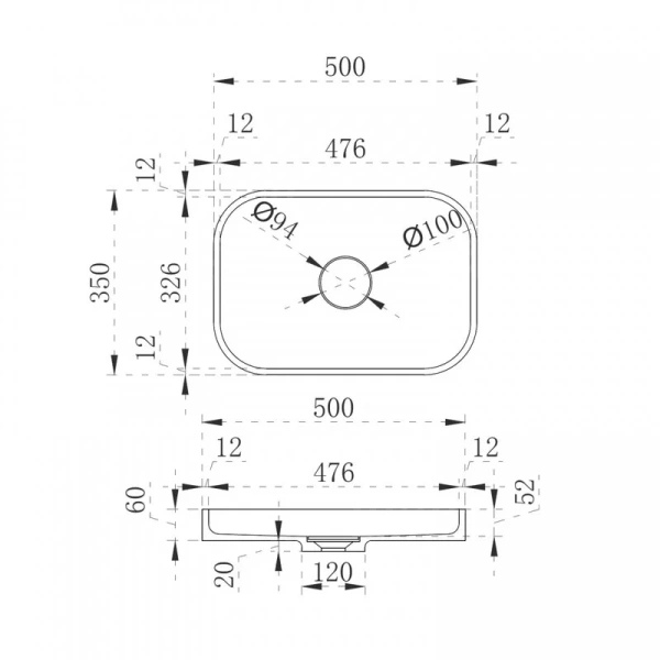 Раковина Abber Stein 50 см прямоугольная AS2602