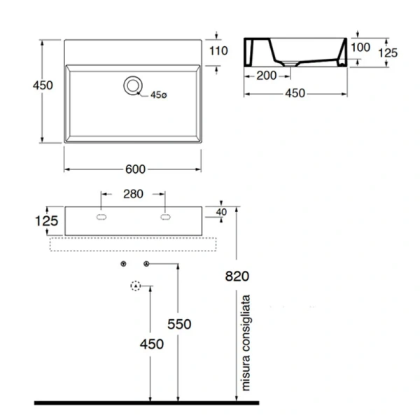 Раковина Azzurra Elegance 60 см прямоугольная ELLP060450QMBI/(EQA60M bi)*1