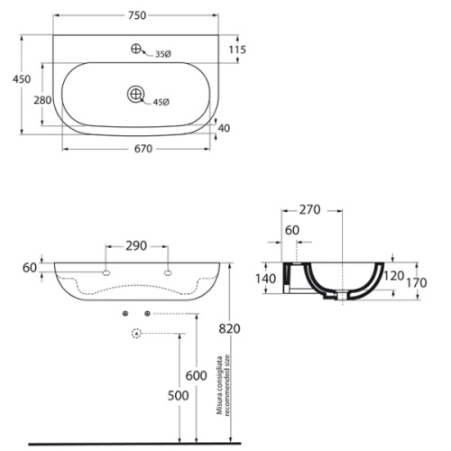 Раковина Azzurra Nuvola NUV200/75 NUV200/75 bi*1