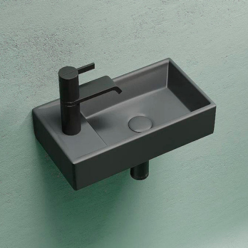 Раковина Ceramica Nova Element CN6051RMDH 40 см с чашей справа выполнена в темном антрацитовом цвете с матовой поверхностью, что добавляет элегантности и современности. Имеется готовое отверстие для смесителя с левой стороны. Отсутствие отверстия для перелива и необходимость отдельной покупки донного клапана позволяют адаптировать установку под нужды пользователя. Подходит для бытового использования. Вес — 6 кг.