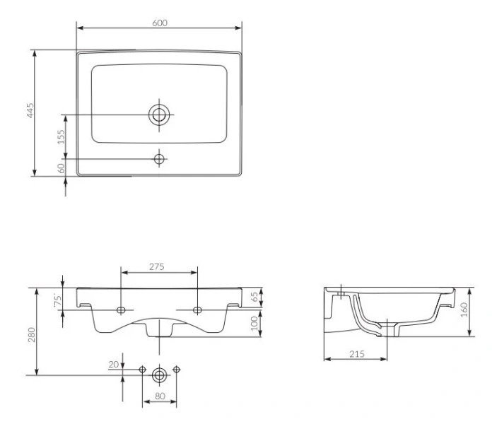 Раковина Cersanit Crea UM-CRE60/1 прямоугольная