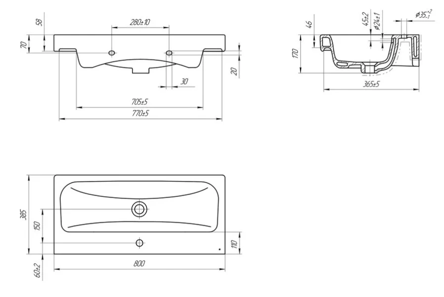 Раковина Cersanit Moduo Slim 80 см белая, 1 отверстие для смесителя S-UM-MOD80SL/1