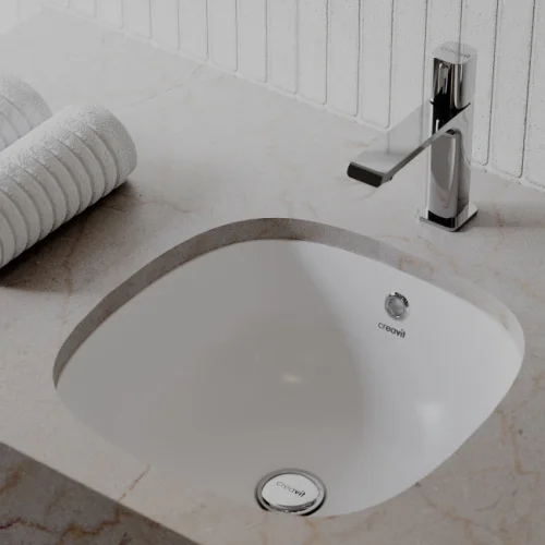 Раковина Creavit Solo SO037-00CB00E-0000 — модель 44 см, монтируемая под столешницу. Изготовлена из прочного санфарфора с глянцевой поверхностью. Имеет слив-перелив (диаметр слива 4,5 см), совместима с сифоном Ø 3,2 см. Отверстий под смеситель нет. Глазурь с ионами серебра подавляет развитие бактерий до 99,9 %, что подтверждено независимыми испытаниями. Вес изделия — 8,52 кг. Предназначена для бытового использования.