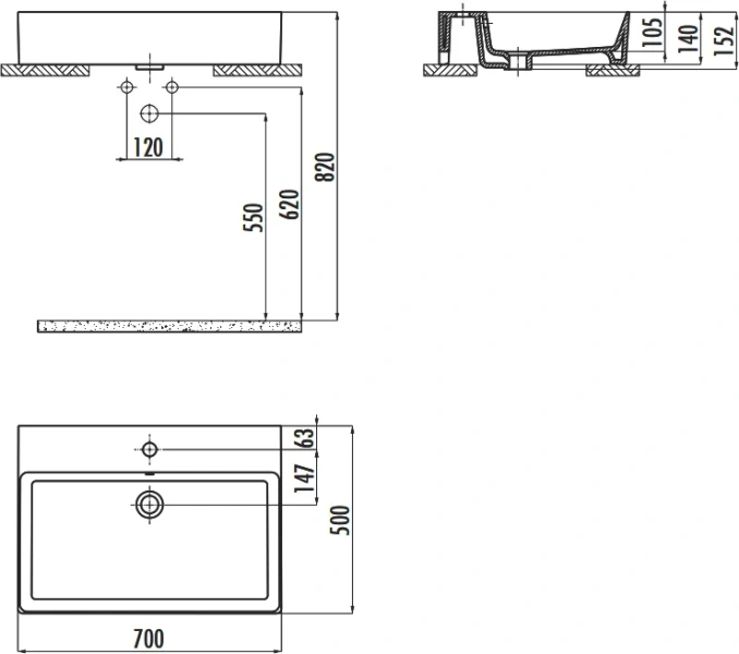 Раковина Creavit Volga 70 см прямоугольная VX270-00CB00E-0000