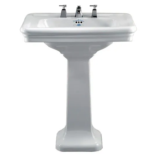 Прямоугольная раковина устанавливается с использования пьедестала. Классический стиль модели позволяет широко использовать ее при оборудовании ванных комнат. На раковину можно установить смеситель под одно отверстие, также под три. Изделие производится в белом и черном цвете. Размер 70х53х85 см.