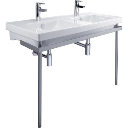 Раковина Jacob Delafon Odeon Up E4730-00 имеет прямоугольную форму, возле каждой чаши есть отверстие для смесителя. В дополнение можно приобрести полотенцедержатель и ножки для монтажа, выполненные из металла. Сочетание белого фаянса и хромированного металла придает модели изящный вид. Изделие создано для просторных помещений.