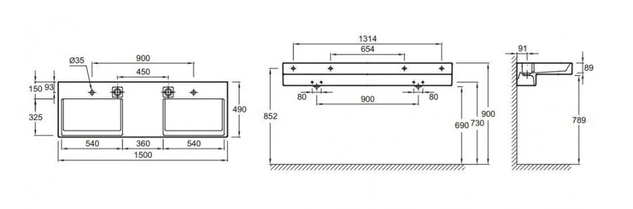 Двойная раковина-столешница 150х49 см, Jacob Delafon Terrace EXA9112 имеет прямоугольную форму, оснащена опорой и двумя отверстиями для монтажа смесителей. Есть достаточно места, чтобы поставить мыльницу, стакан, другие аксессуары. Раковина производится из качественного белоснежного фаянса.