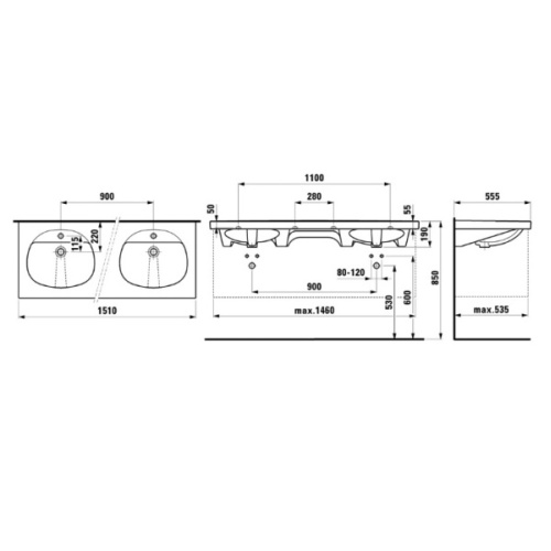 Раковина Laufen Talux 8.1467.8 рассчитана на два пользователя и установку в помещении современного стиля оформления. Перед каждой чашей выполнено по одному отверстию для установки смесителя. Можно заказать раковину без отверстий. Модель содержит достаточно свободного места, чтобы расположить аксессуары. Чаша производится в белом цвете. Есть гарантия.