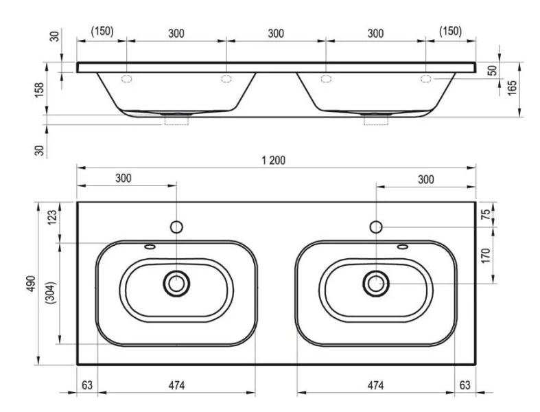 Раковина Ravak Chrome 1200 XJG011120, XJG012120 –двойной умывальник, который можно установить отдельно или использовать в качестве столешницы для тумбы подходящего размера. Его габариты – 120х49 см. Чаши одинаковые, прямоугольные, со скругленными углами. У каждой есть отверстия для установки смесителя диаметром 35 мм и для слива-перелива. Есть модель со скрытым переливом. Раковина сделана из искусственного камня с содержанием доломита. Она прочная, износостойкая, с белой гладкой поверхностью, неприхотливой в уходе.