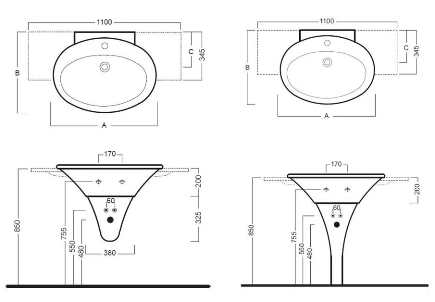 | Расположение | Подвесные, На полупьедестал, На пьедестал, Пристенные |