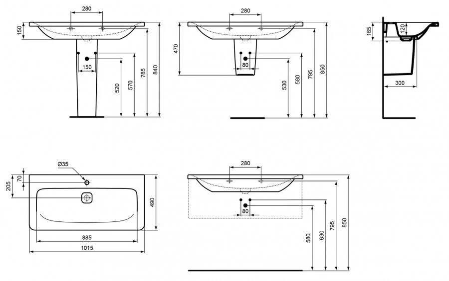 | Расположение | Подвесные, На полупьедестал, Пристенные |