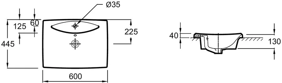 Раковина Jacob Delafon Escale E1289-00 – размером 600х445 мм. Она встраиваемая, белая, керамическая, с хромированными заглушками слива-перелива. Есть отверстие для установки смесителя. Умывальник Escale также подходит для установки сверху на тумбу. У него универсальная форма – прямоугольная, с покатыми бортиками, достаточно глубокая. Поверхность гладкая, устойчивая к загрязнениям, простая в чистке. Такой умывальник из Франции размером 60х44.5 см хорошо смотрится в мебели классического и современного дизайна.