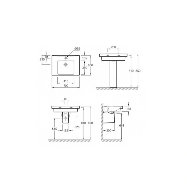 | Расположение | Подвесные, На полупьедестал, На пьедестал, Пристенные |