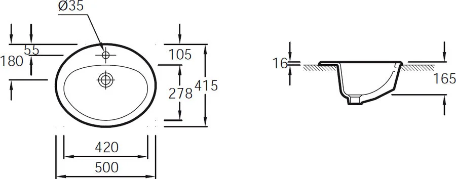 Раковина Jacob Delafon Ovale Dessus 50 см встраиваемая E1358-00