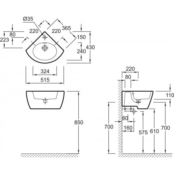 Раковина Jacob Delafon Ove 51 см угловая E1566-00