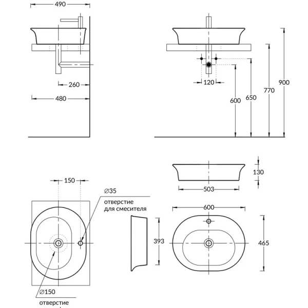 Раковина Kerama Marazzi Canaletto 60 см накладная CN.wb.60